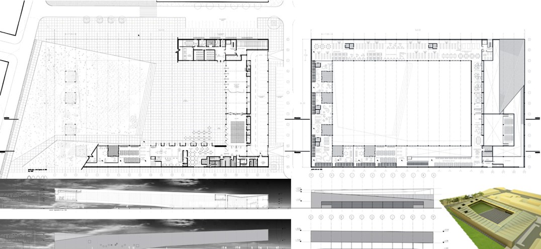 El edificio administrativo se construirá en una primera etapa. Su cubierta a dos aguas demuestra, por medio de su forma, dos principales paquetes programáticos de funcionamiento independiente: ingreso, administración y control; y salón de usos múltiples.