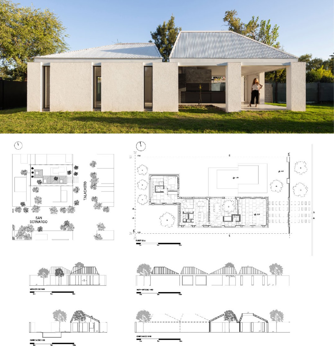 La Casa y Quincho Talacasto is a suburban dwelling. As such, it is located loosely in the lot and arranged longitudinally, opening mainly to the north to receive the sun. The position of the volumes divides the lot, achieving two gardens of different qualities and uses.