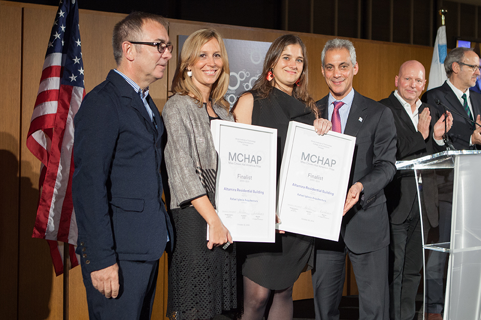 Hemos sido invitadas a representar al Arq. Rafael Iglesia en Inaugural Award Celebration del Mies Crown Hall American Prize, a realizarse durante los días 21 y 22 de Octubre en el Illinois Institute of Technology en Chicago, EEUU. El Edificio Altamira de nuestra ciudad, ha sido anunciado finalista en Santiago de Chile por el presidente del premio Profesor Kenneth Frampton el pasado 26 de Septiembre. Los siete finalistas se consideran respuestas sobresalientes a los desafíos de construir en el siglo XXI, destacando la importancia de la innovación y el valor de lo público en la metrópolis contemporánea.
