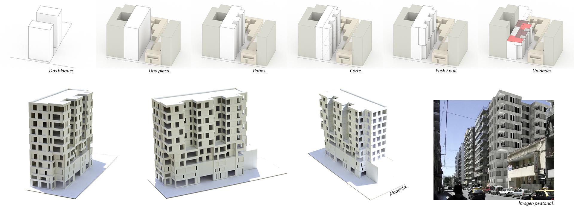 Ubicación/Location Rosario, Provincia de Santa Fe, Argentina. Type Residential building. Program Private residences. Type plan 1 bedroom, 2 bedrooms and 2 bedrooms plus apts. TotalArea 1785 m2 Work Commissioned Design Development. Status Delivered. Year 2016 Client Confidential. Team 2(A) María Eva Contesti, Guillermina Iglesia. Collaborators María José Manzi, Virginia Florez, Alejandro Perriard.